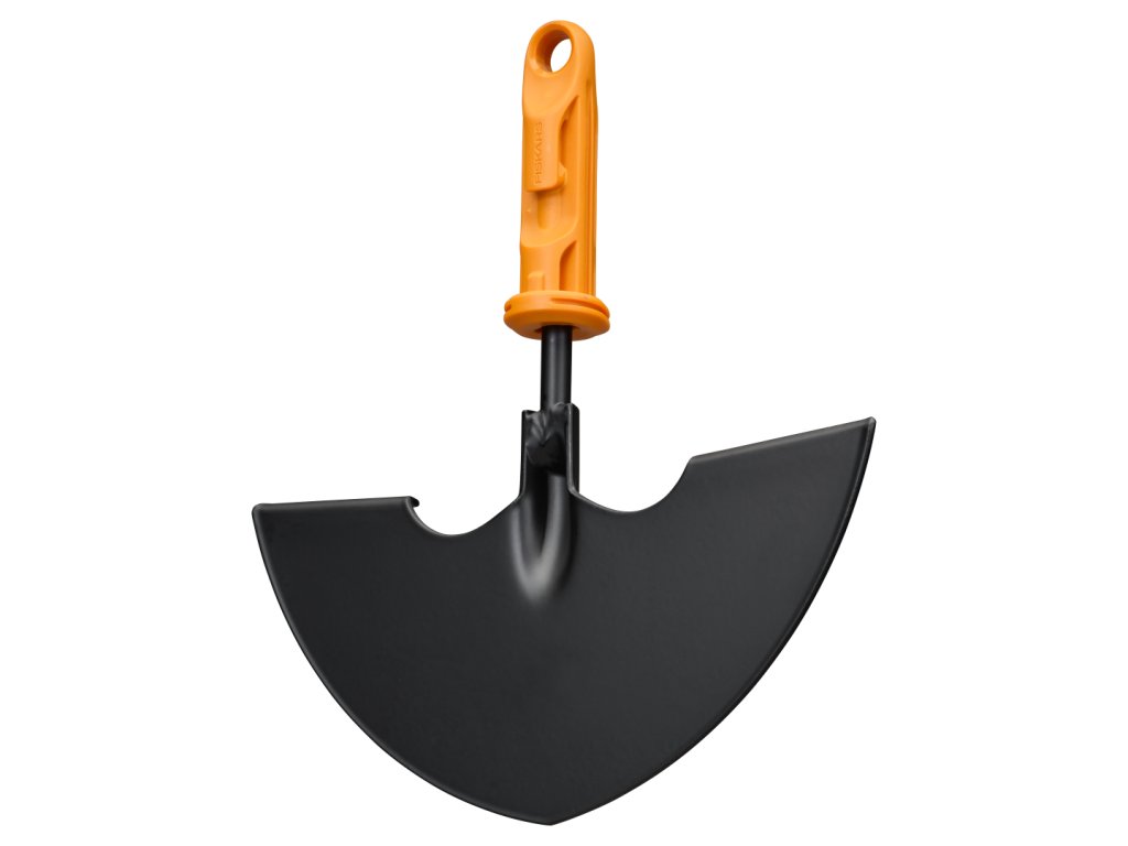 Nůž na okraje trávníku Fiskars OneClick představuje profesionální řešení pro docílení čistých linií v zahradní architektuře bez použití motorové mechanizace. Hlavním konstrukčním prvkem je čepel z vysoce legované bórové oceli, která je tepelně zpracována pro dosažení maximální tvrdosti a odolnosti proti otěru. Půlkruhový tvar čepele je geometricky optimalizován pro valivý řez, který plynule odděluje drny a přerůstající kořenový systém trávy. Horní hrana čepele je opatřena širokým plochým lemem, který slouží jako nášlapná plocha, čímž umožňuje snadné zaražení nástroje i do vyschlé nebo silně zhutněné půdy za pomoci váhy těla.