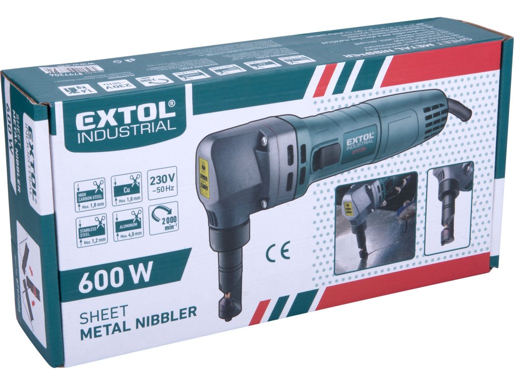 Elektrické nůžky jsou určeny k dělení plochého, vlnitého a lichoběžníkového plechu bez zkroucení a deformace hran. Díky matrici otočné o 360° lze vystřihovat libovolné tvary. Součástí přístroje jsou drážky pro změření tloušťky plechu.