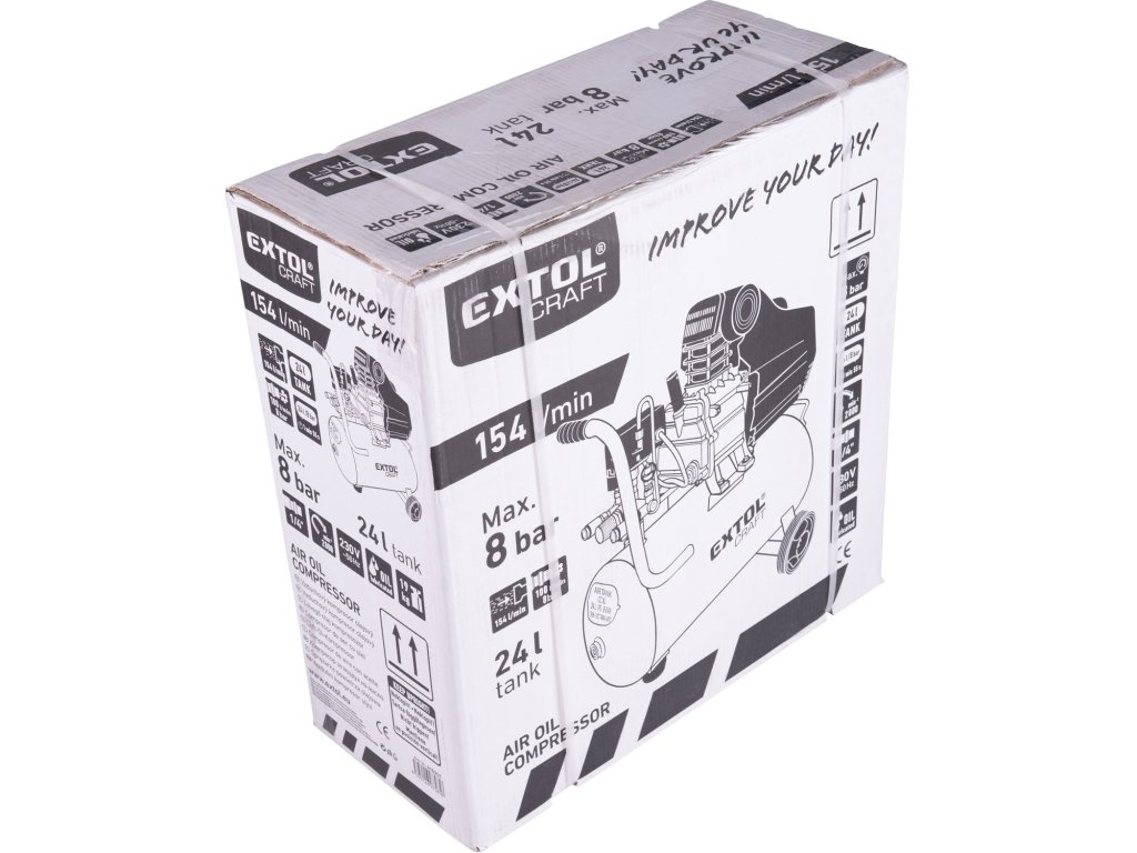 EXTOL CRAFT olejový kompresor 418201 je jednopístový olejový vzduchový kompresor s tlakem až 8 bar a objemem tlakové nádoby 24 l, navržený pro použití všude tam, kde je potřeba spolehlivý zdroj stlačeného vzduchu. Kompresor je vhodný pro huštění pneumatik, provoz běžného pneumatického nářadí, čištění vzduchem nebo nanášení nátěrů stříkací pistolí.