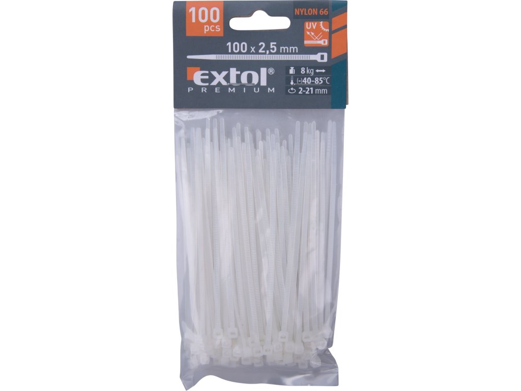 pásky stahovací na kabely bílé, 100x2,5mm, 100ks, nylon PA66