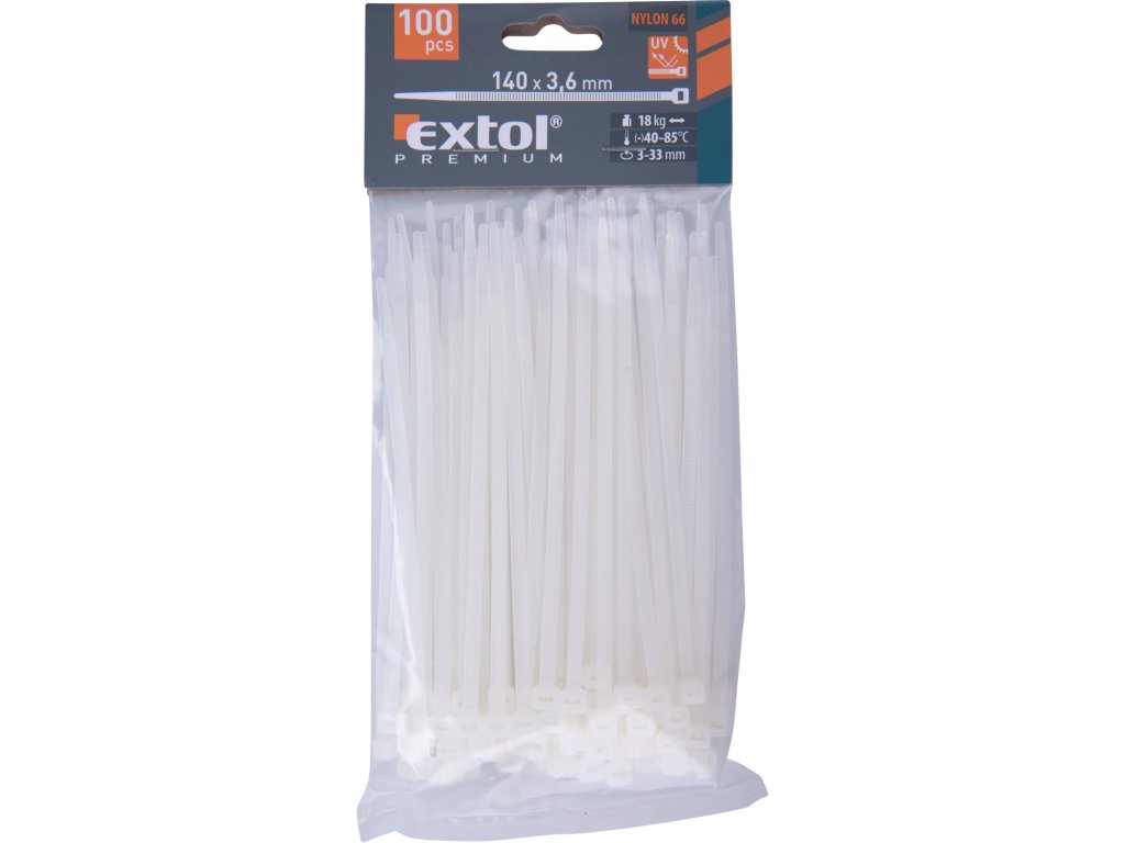 pásky stahovací na kabely bílé, 140x3,6mm, 100ks, nylon PA66