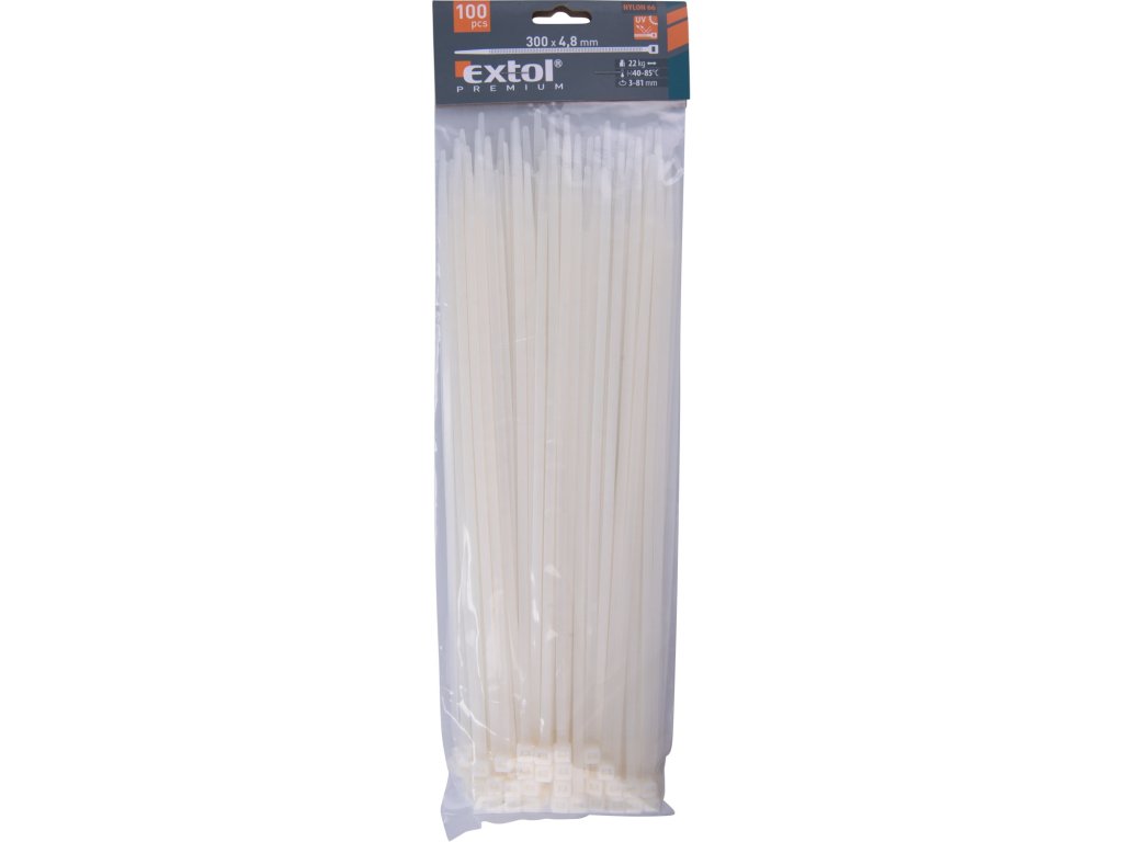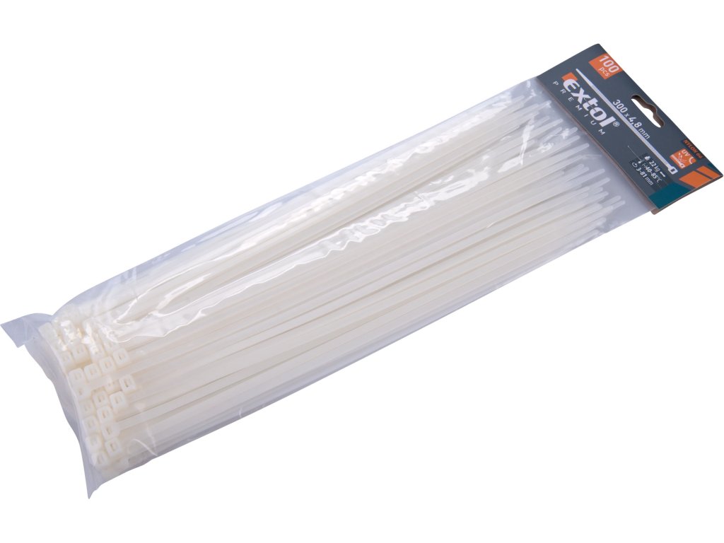 pásky stahovací na kabely bílé, 300x4,8mm, 100ks, nylon PA66