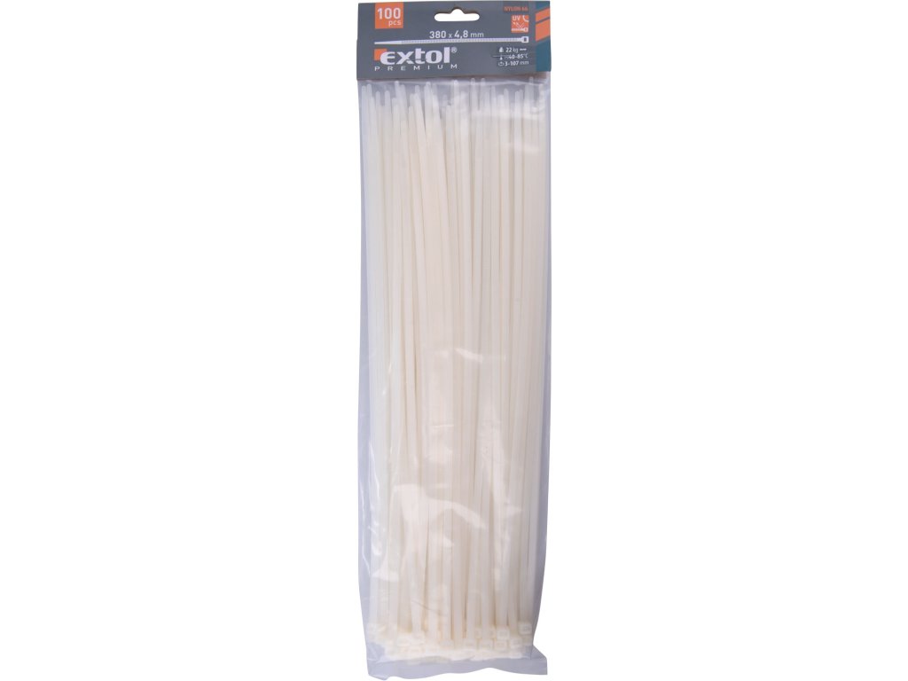 pásky stahovací na kabely bílé, 380x4,8mm, 100ks, nylon PA66