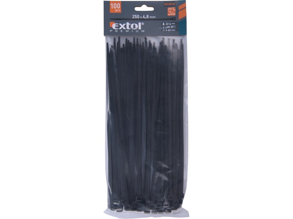 pásky stahovací na kabely černé, 250x4,8mm, 100ks, nylon PA66