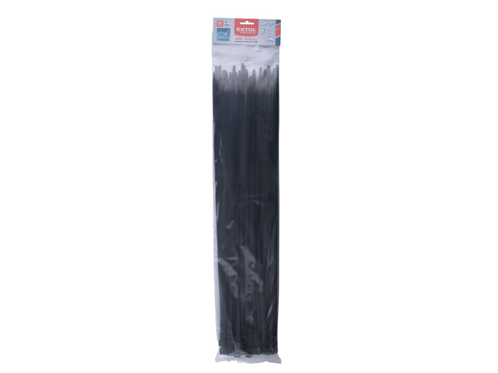 pásky stahovací na kabely černé, 600x8,8mm, 50ks, nylon PA66