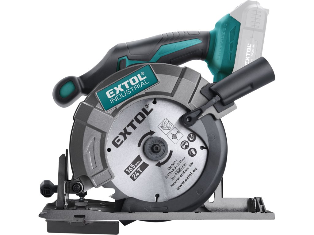 Brushless kotoučová pila je navržena tak, aby uživatelům poskytla výkonné a snadné řezání při různých instalatérských, elektrických, rámovacích, dokončovacích a tesařských pracích. Pila je poháněná nejmodernějším „brushless" motorem s 3650 ot./min umožňuje uživatelům rychle a snadno řezat tvrdým materiálem. Tento nový typ motoru má vyšší životnost, je výkonnější a má menší spotřebu el. energie než klasické motory s uhlíkovými kartáči. Horní a spodní kovový ochranný kryt poskytují vynikající ochranu kotouče při pádu. Gumová měkká rukojeť je ergonomicky navržena tak, aby uživatelům poskytovala vynikající pohodlí a vyvážení pro snadno ovladatelné řezy. Pro běžnou práci dostačují jeden nebo dva 2000mAh akumulátory, které můžete rychle nabít v rychlonabíječce, pro náročnější nebo delší práci doporučujeme větší akumulátory s kapacitou 4000–8000mAh. Akumulátor lze použít ve všech typech nářadí řady EXTOL SHARE20V. Díky použité Li-ion technologii je ho možné kdykoliv dobíjet, aniž by se tím snižovala jeho kapacita. Li-ion akumulátor ztrácí energii vlivem samovybíjení velmi pomalu a vydrží dlouho nabitý a připravený k použití.