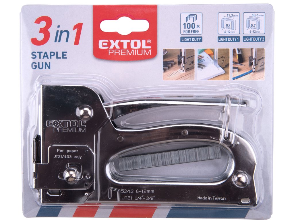 › Dílna › Nýtovací kleště, sponkovačky › Sponkovačky › pistole sešívací/sponkovací 3funkční, 6-12mm, včetně 100ks spon