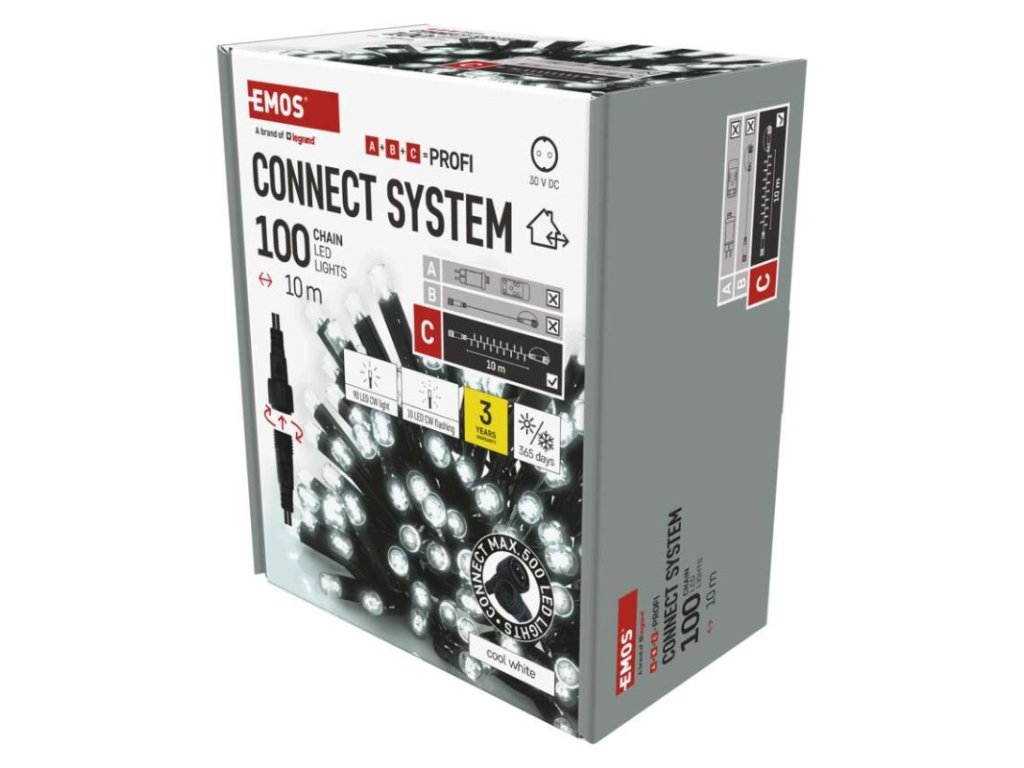 Profi LED spojovací řetěz problikávající, 10 m, venkovní i vnitřní, studená bílá