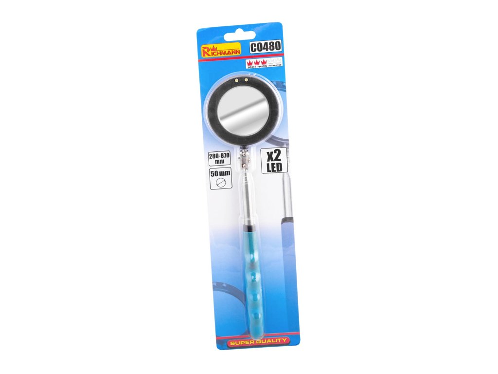 › Dílna › Magnetická zrcátka, misky, nástavce, držáky › RICHMANN Magnetické inspekční zrcátko kulaté s LED diodami | 50 mm, 280-870 mm