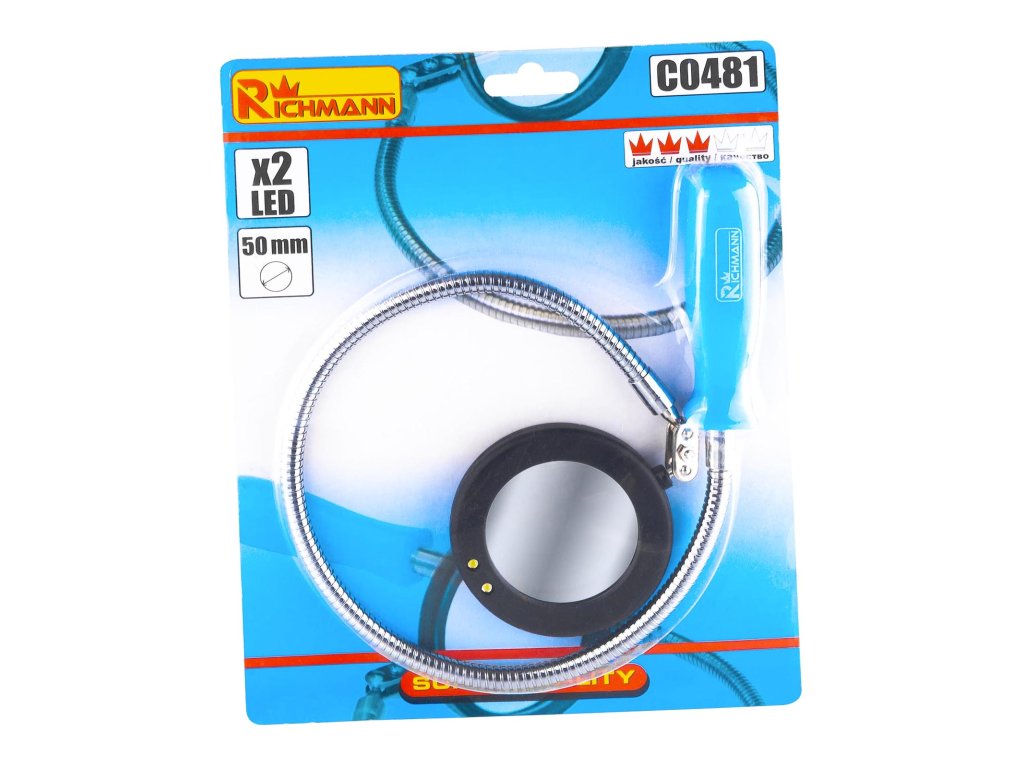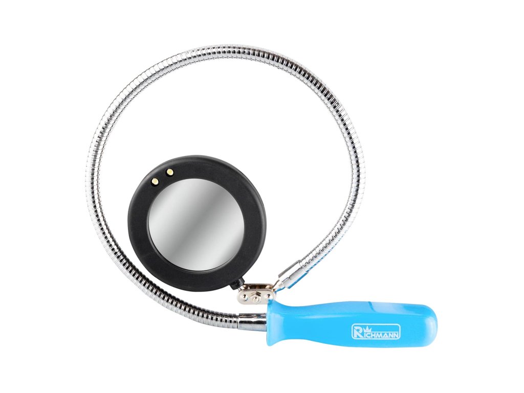 › Dílna › Magnetická zrcátka, misky, nástavce, držáky › RICHMANN Magnetické inspekční zrcátko ohebné kulaté s LED diodami | 50 mm