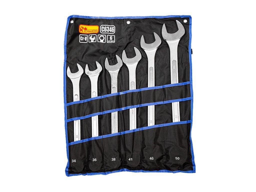› Dílna › Klíče › Sady klíčů › Očkoploché › RICHMANN Sada očkoplochých klíčů vyhnutých 6 dílů | 34-50 mm, textilní obal