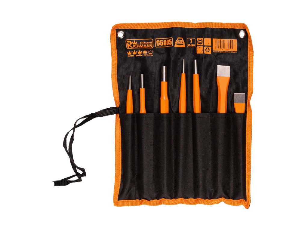 › Dílna › Sekáče, páčidla, průbojníky, děrovače › Sekáče › RICHMANN Sada sekáčů a důlčiků 7 dílů | textilní obal