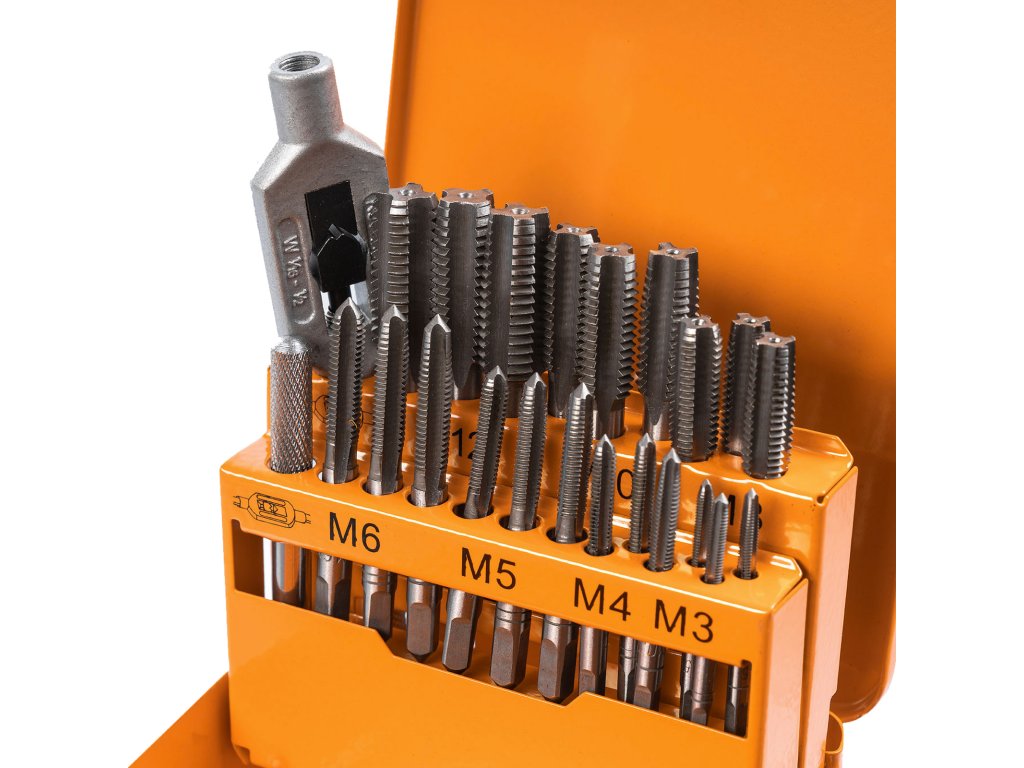 Vhodné pro dílny, údržbáře i kutily. Ideální pro opravy závitů a výrobu nových závitů v oceli, hliníku i jiných kovech.