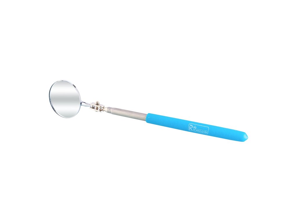 Kulaté teleskopické inspekční zrcátko o průměru 57 mm umožňuje viditelnost v těžko přístupných místech. Zrcátko je umístěno na kloubu umožňujícím širší rozsah nastavení úhlu. Ergonomická protiskluzová plastová rukojeť. Vysouvá se v rozmezí 200 - 350 mm.