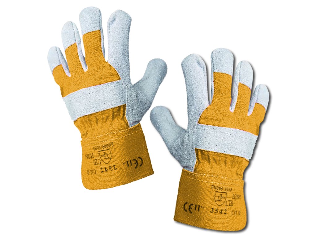 Kvalitní pracovní rukavice Eider Egon vyrobené z pevné kůže a bavlny, které poskytují vynikající ochranu a pohodlí při práci. Díky svému žluto-šedému designu jsou rukavice nejen praktické, ale také stylové.