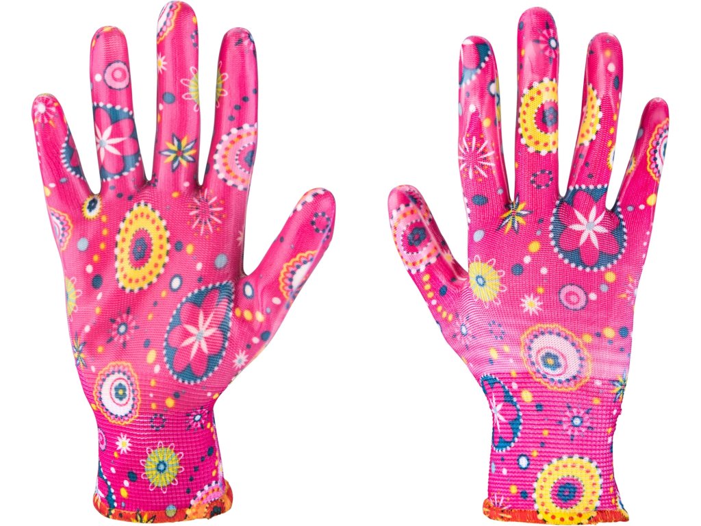 › Stavba › Ochranné pomůcky, rukavice, brýle › Rukavice › rukavice zahradní polyesterové, polomáčené v nitrilu, velikost 8', EXTOL LADY