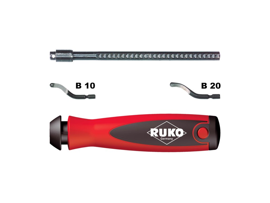 RU107003 je univerzální sada pro efektivní odstranění otřepů z vnitřních a vnějších hran. Součástí balení je ergonomická rukojeť PH a dvě výkonné výměnné čepele B10 a B20, které pokrývají široké spektrum aplikací.