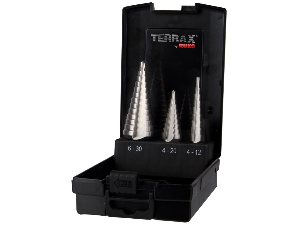 › Nástroje › Nástroje do kovu › Vrtáky stupňovité › RUKO Sada stupňovitých vrtáků do kovu Terrax | 4-12, 4-20, 6-30 mm