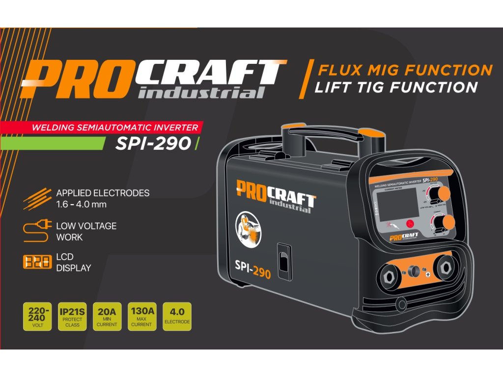 Svářečka Procraft SPI-290 (MMA / TIG Lift / FLUX)
