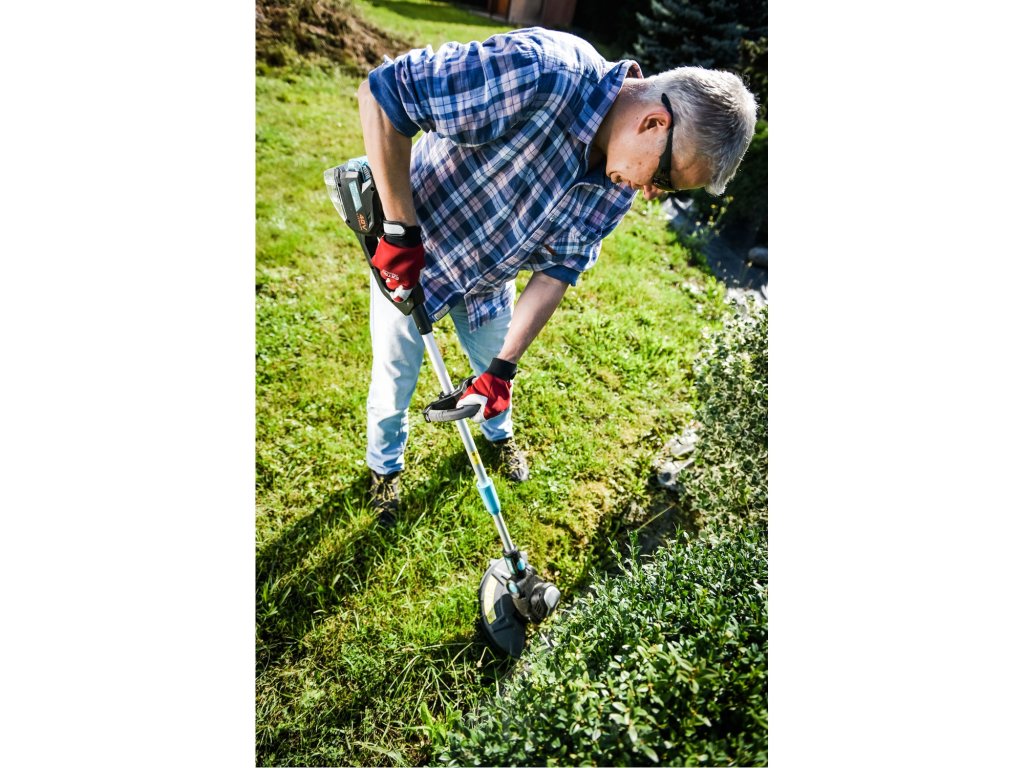 Velmi tichá strunová aku sekačka je určena k udržování zahradního trávníku, k úpravě okrajů trávníku a vyžínání trávy v těžko přístupných místech, např. u obrubníků, pod lavičkami, kolem stromů a keřů apod., které je obtížné či nemožné vysekávat pojízdnou sekačkou. Vysokokapacitní baterie umožňuje dlouhodobou práci a velký sekací výkon. Díky napájení z baterie již není nutné dávat pozor na napájecí kabel a manipulace s ní je pohodlnější. Díky Li-ion akumulátoru je možné sekačku kdykoliv dobíjet, aniž by se tím snižovala kapacita akumulátoru. Li-ion akumulátor ztrácí energii vlivem samovybíjení velmi pomalu a vydrží dlouho nabitý.