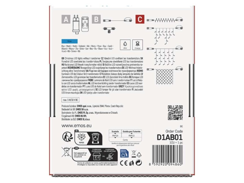 Standard LED spojovací vánoční řetěz, 10 m, venkovní i vnitřní, modrá