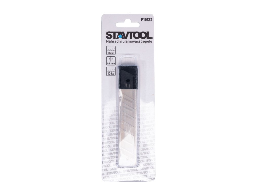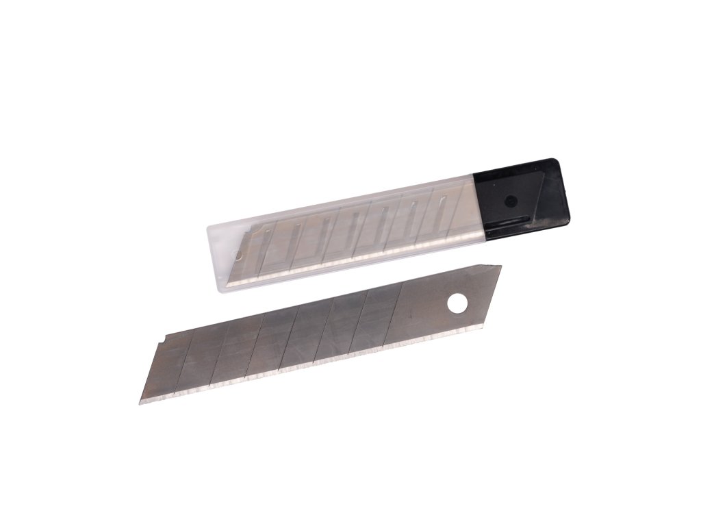 Náhradní čepele do ulamovacích nožů. Balení 10ks v plastové krabičce s okem pro zavěšení. Technologie broušení břitů pod třemi úhly značně zvyšuje životnost břitu.