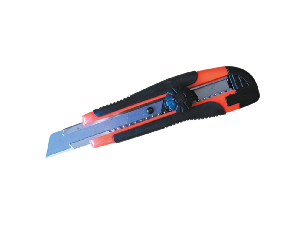 › Dílna › Nože, náhradní břity › Ulamovací a odlamovací nože › STAVTOOL Nůž ulamovací pogumovaný, šroubová aretace | C60, 18 mm