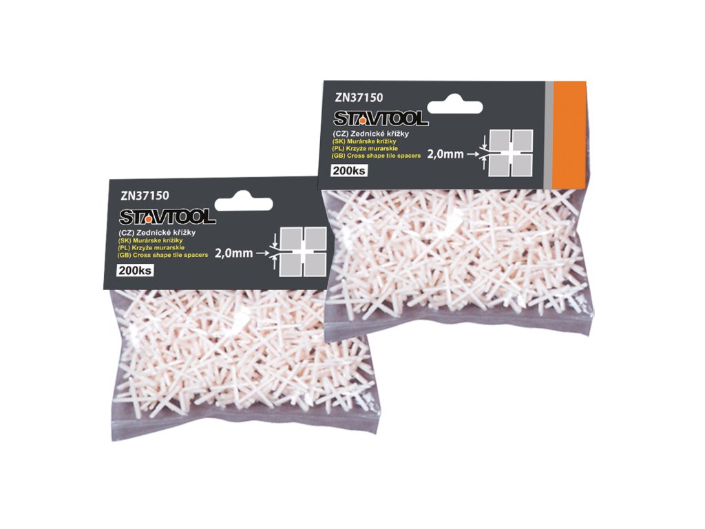 › Stavba › Ostatní stavební nářadí › Klínky, křížky, skoby, olovnice, spony › STAVTOOL Plastové křížky | 4 mm, 1bal/100ks