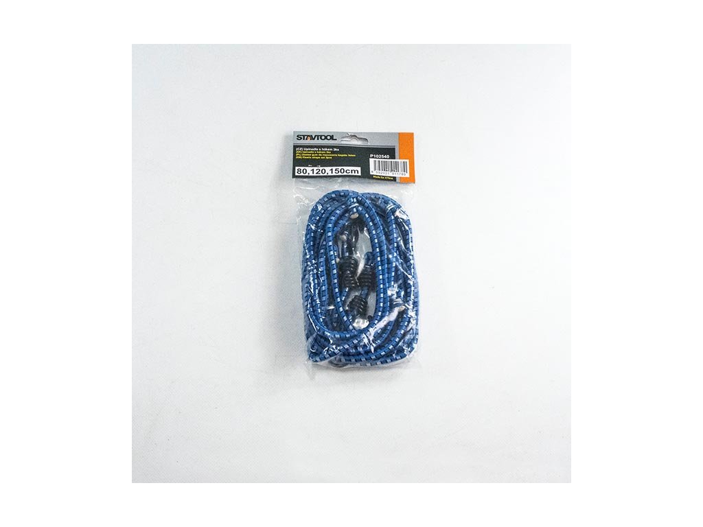 › Dílna › Upínací pásy, popruhy, upínáky, chrániče k pásům › Popruhy, upínáky › STAVTOOL Sada gumových upínacích popruhů s hákem | 80,120,150 cm, 3 ks