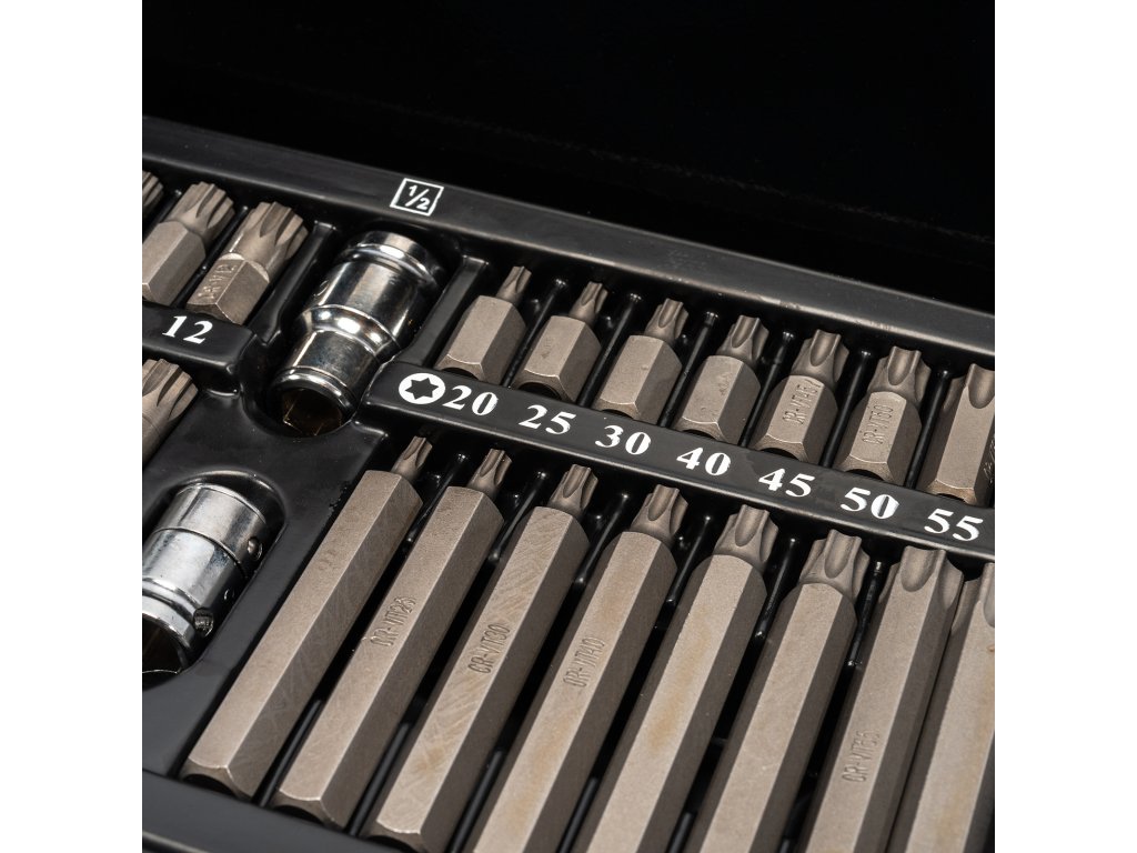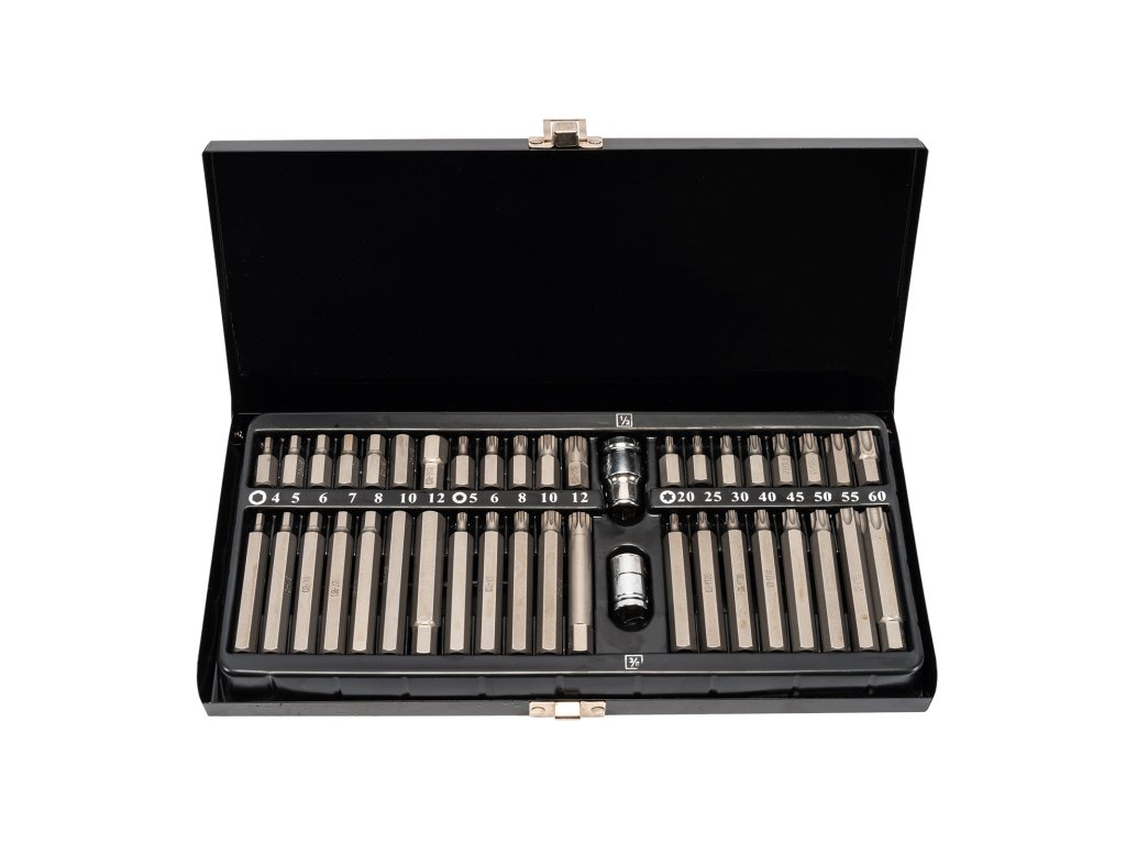 Profesionální sada 42 nástavců TRX, Imbus a XZN v kovovém boxu je určena pro profesionální dílny, servisní práce i domácí kutily. Sada obsahuje klasické i prodloužené bity, redukce a nástavce pro maximální flexibilitu při práci s různými šrouby.