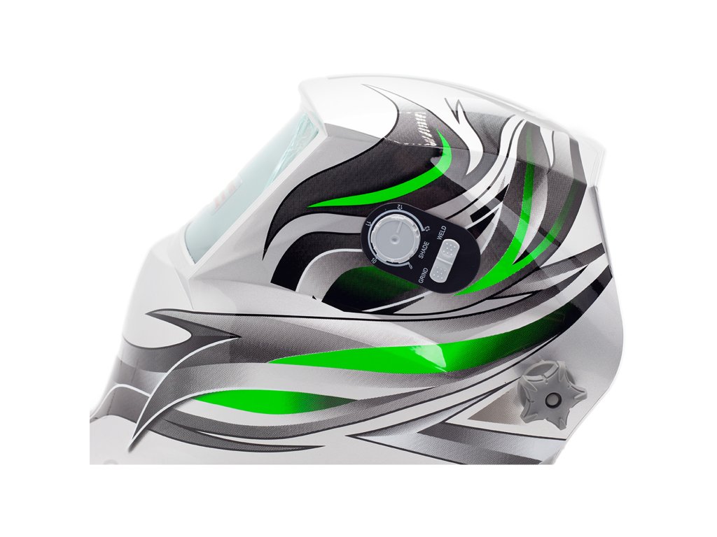 Svářecí kukla Procraft SPH90-800-F je určena ke chránění vašeho zraku při svařování metodami MMA, MAG, MIG, FLUX, WIG, PAW, řezání plazmou a plamenem, broušení. Napájení solárním článkem a lithiovými bateriemi. Nejvyšší optická třída: 1/ 1/ 1/ 1 EN379, Reakční doba filtru je 1/30000 Možnost nastavení zpoždění rozjasnění v rozsahu 0,1 - 1,0 s. Automatické ztmavení lze nastavit v rozsahu DIN 9-13 (DIN 4). Plynulé vnější ovládání usnadňuje a zrychluje práci. Součástí dodávky jsou vnější i vnitřní folie. Balení karton.