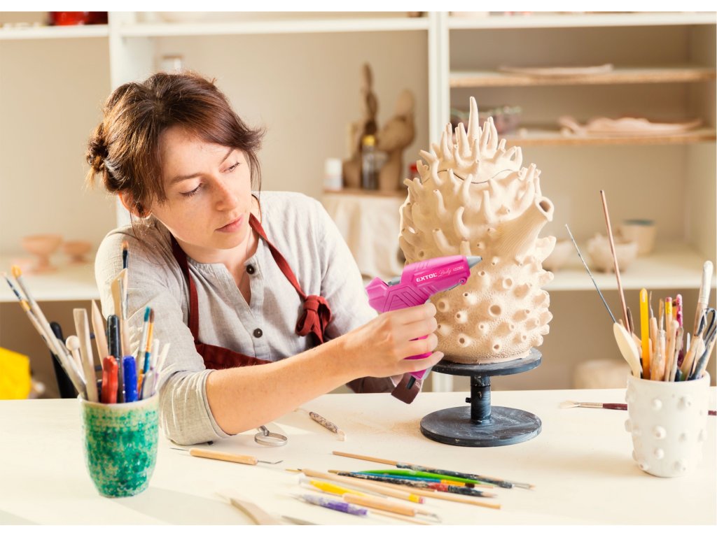 EXTOL LADY tavná lepicí pistole 11 mm je ideálním nástrojem pro kutily a kreativce, kteří hledají přesný, lehký a spolehlivý nástroj pro jemné lepicí práce a dekorace.