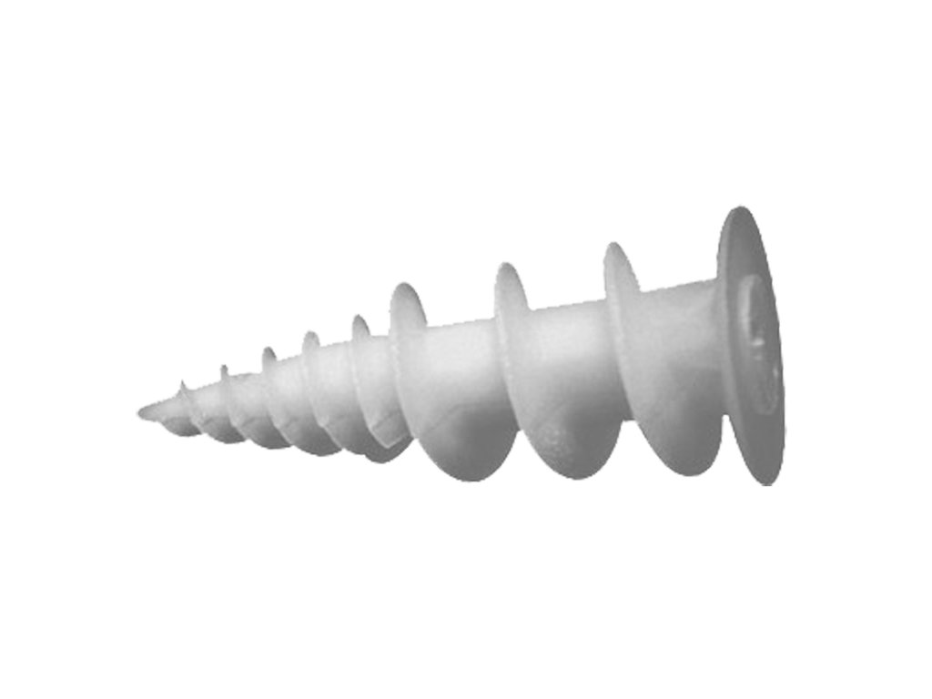 Speciální hmoždinka pro použití do sádrokartonu. Hmoždinka se bez jakéhokoli nástroje jednoduše našroubováním zařízne do sádrokartonové desky. Materiál se upevní pomocí vrutů do dřeva, dřevotřísky nebo sádrokartonu.
