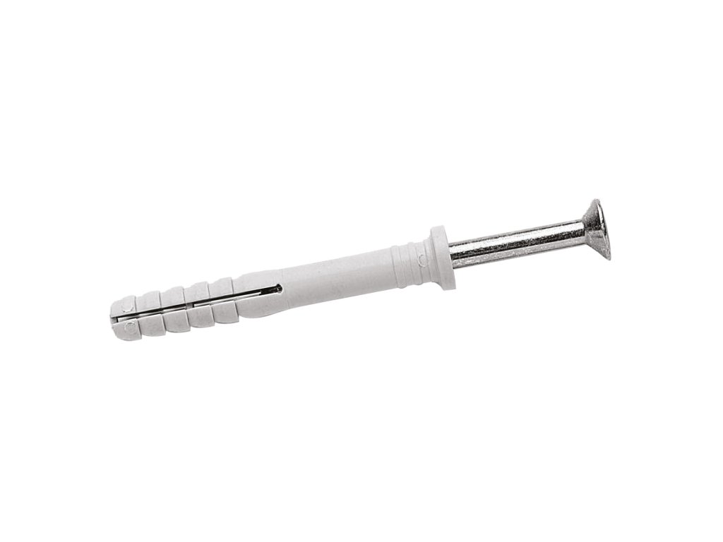 Hmoždinka s plochou hlavou pro použití do plných stavebních materiálů k upevňování latí, rámů, kovových profilů apod.. Snadná a rychlá montáž (vrutohřeb se nešroubuje, ale zatlouká).