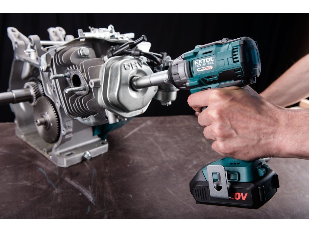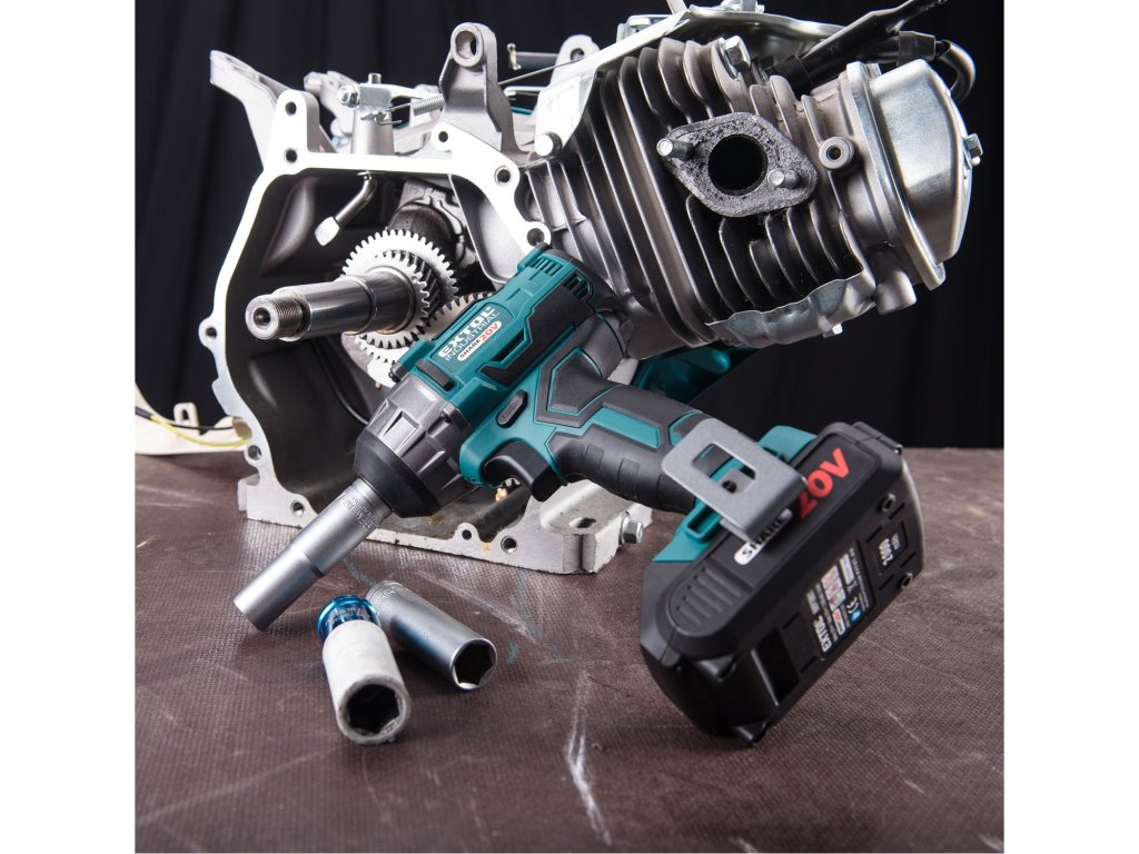 Lehký a výkonný rázový brushless aku utahovák s vysokým max. kroutícím momentem 250Nm Vám poskytuje výkon, který potřebujete k dokončení široké škály utahovacích operací – utahování a povolování šroubů. Utahovák je poháněná nejmodernějším „brushless" motorem. Tento nový typ motoru má vyšší životnost, je výkonnější a má menší spotřebu el. energie než klasické motory s uhlíkovými kartáči. Rázový moment zvyšuje sílu utahováku při šroubování a zároveň snižuje spotřebu baterie. Proto je při šroubování mnohem efektivnější než aku vrtačka a také zašroubuje více šroubů na jedno nabití baterie. Celokovová převodovka uložená v kovovém pouzdru zajišťuje bezchybný chod při i vysoké zátěži a přispívá k lepšímu odvodu tepla vznikajícího při práci. Pro běžnou práci dostačují jeden nebo dva 2000mAh akumulátory, které můžete rychle nabít v rychlonabíječce, pro náročnější nebo delší práci doporučujeme větší akumulátory s kapacitou 4000–8000mAh. Akumulátor lze použít ve všech typech nářadí řady EXTOL SHARE20V. Díky použité Li-ion technologii je ho možné kdykoliv dobíjet, aniž by se tím snižovala jeho kapacita. Li-ion akumulátor ztrácí energii vlivem samovybíjení velmi pomalu a vydrží dlouho nabitý a připravený k použití.