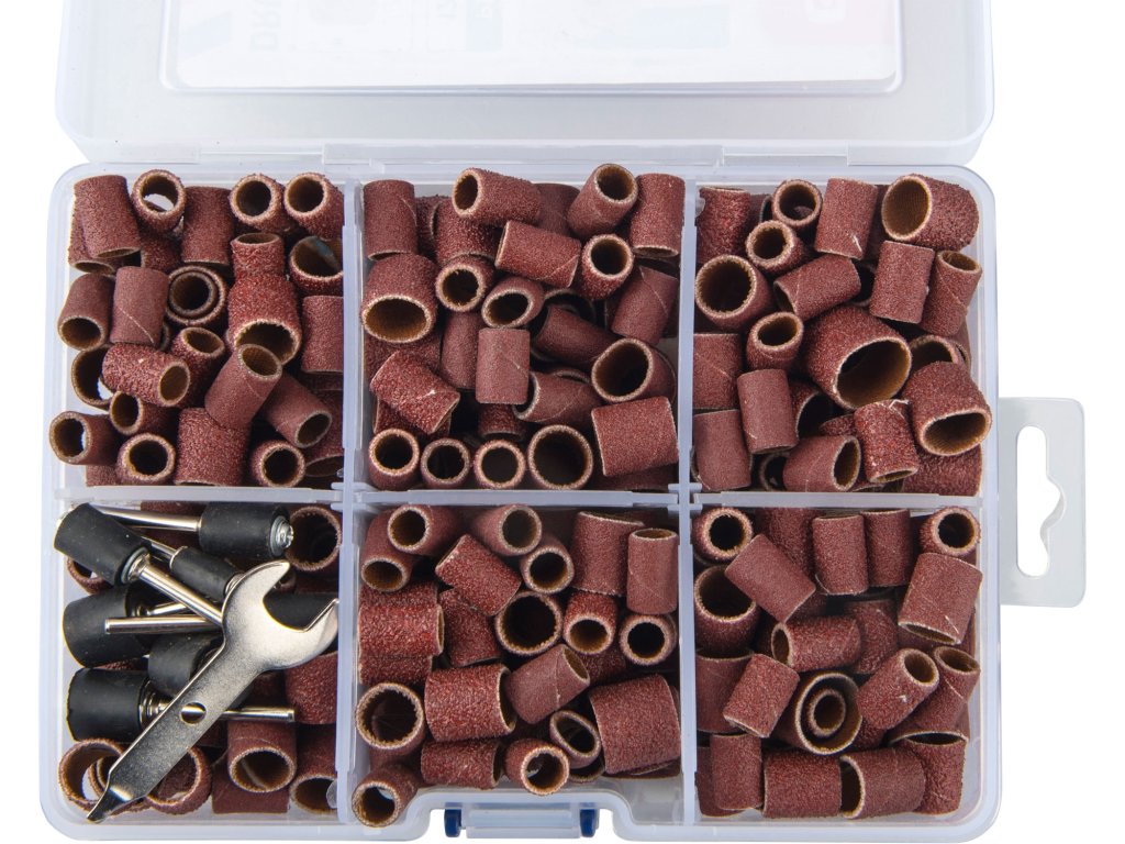doplňující parametr | brusné válce: P80 120×, P120 120×, P240 100×, ⌀9-12-14mm × 13mm, unašeč 9×: ⌀6,4-9,5-12,7mm, stopka ⌀3,2mm, plastová krabička s |