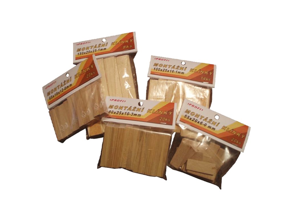 › Stavba › Ostatní stavební nářadí › Klínky, křížky, skoby, olovnice, spony › VAŠEK Klínky montážní dřevěné | 80x25x10-3 mm 1bal/20ks