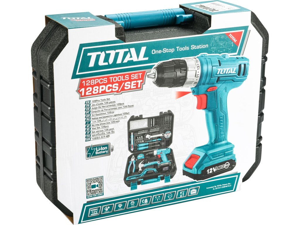 Vrtací šroubovák AKU 12V Li-ion s nářadím, sada 128ks