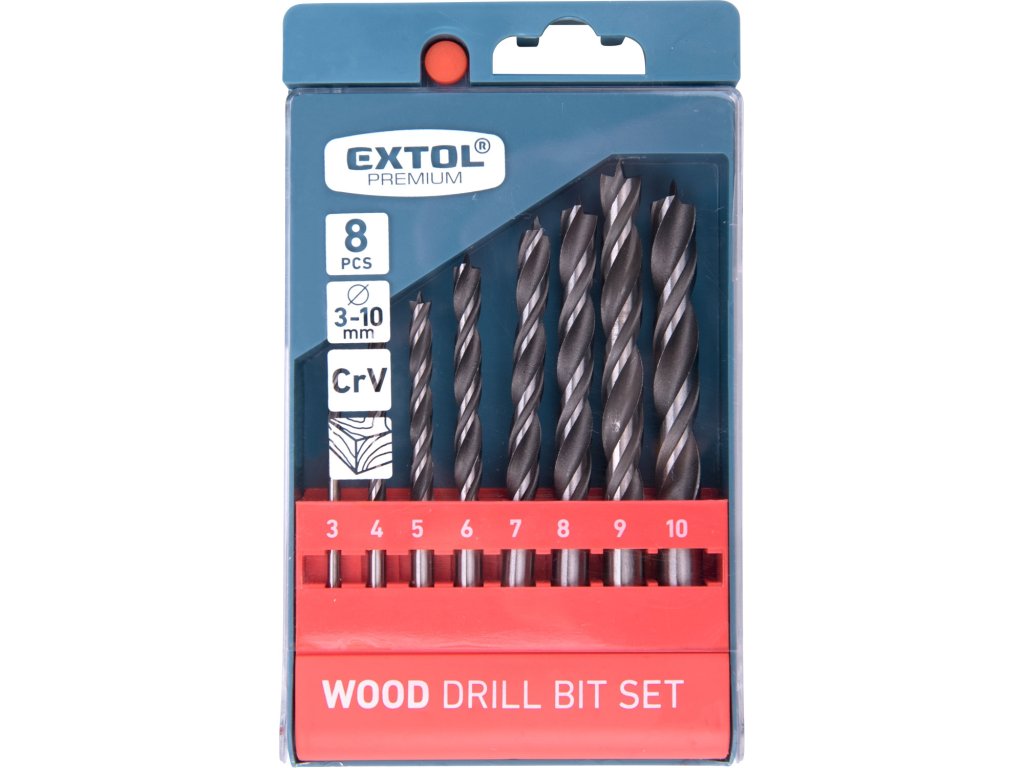 vrtáky do dřeva, sada 8ks, O 3-10mm, CrV