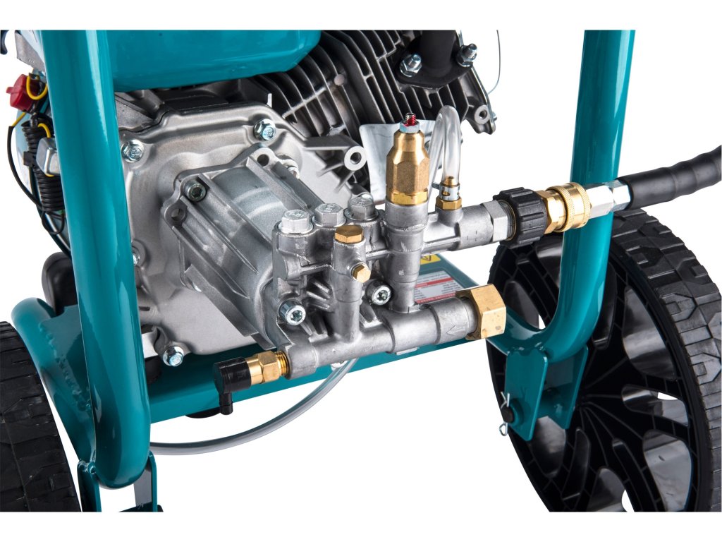 Srdcem zařízení je výkonný HERON motor, který poskytuje dostatečný výkon pro nepřetržitou práci. Na jednu palivovou nádrž 3,6 l je možné pracovat až 2 hodiny bez doplnění paliva. Kompaktní konstrukce s malým půdorysem umožňuje snadné umístění a manipulaci v omezených prostorách. Zabudovaný šamponovač v rámu umožňuje aplikaci čisticího prostředku přímo během mytí povrchů.