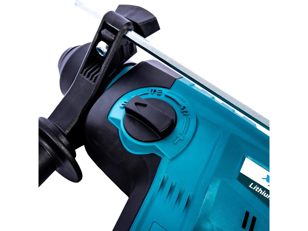 Nízká hmotnost##LED osvětlení pracovní plochy##Ergonomicky tvarovaná pogumovaná rukojeť##Sklíčidlo SDS PLUS##4 funkce: vrtání, vrtání s příklepem, aretace polohy sekáče a sekání