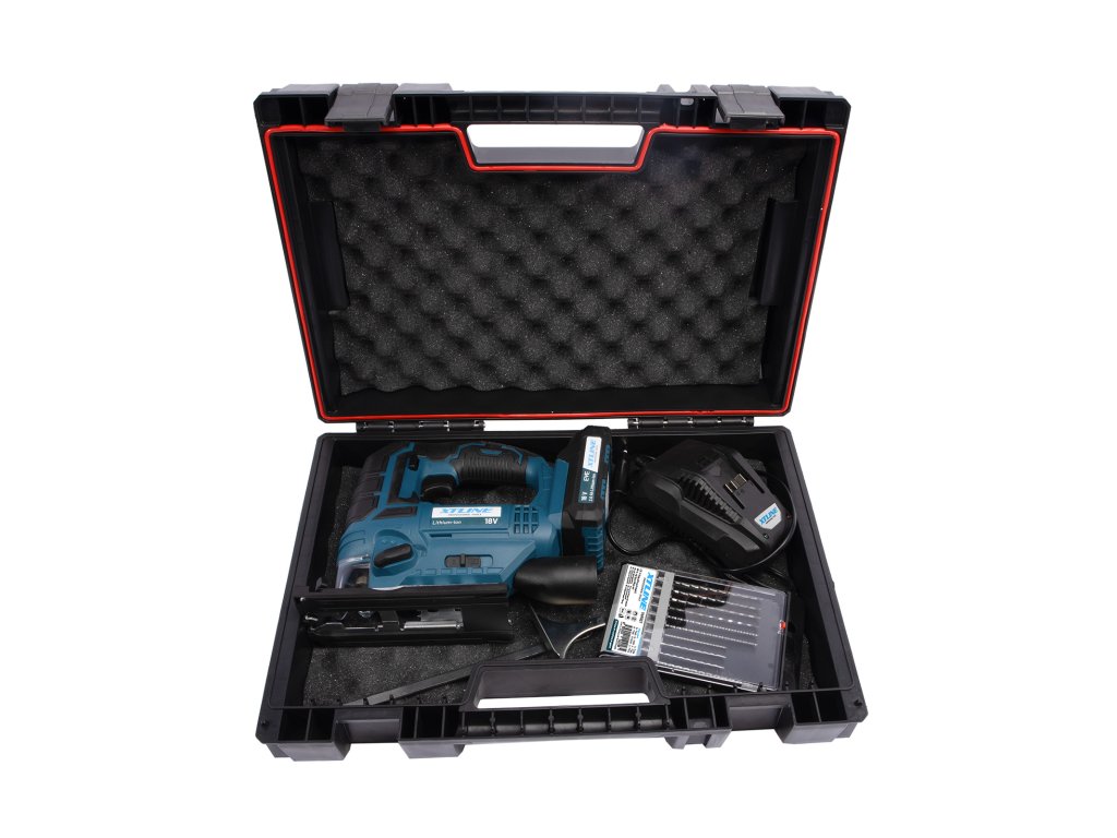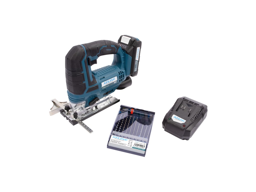 XTLINE Aku přímočará pila 18 V + baterie 2.0 Ah + nabíječka 2.4 A + pilové plátky + box
