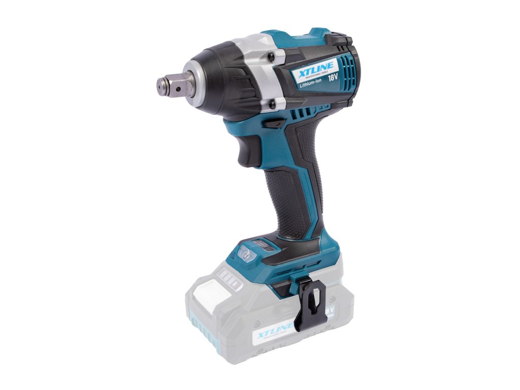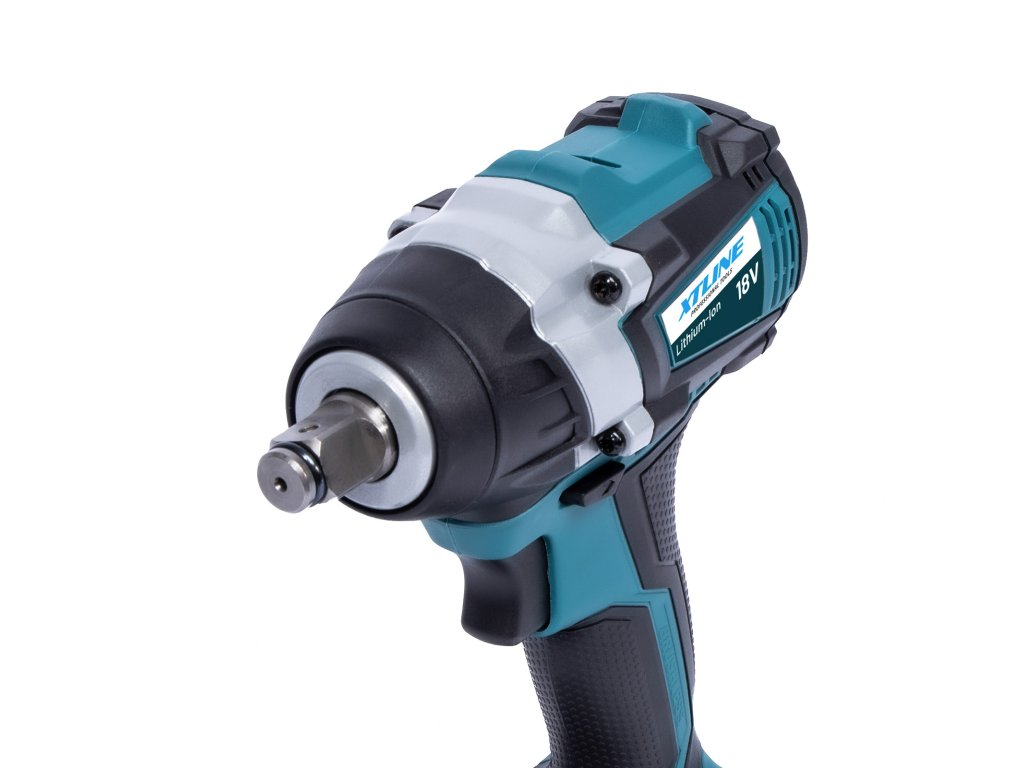 Upínání pomocí 1/2" čtyřhranu je kompatibilní se standardními nástrčnými hlavicemi, což výrazně rozšiřuje možnosti využití. Tento model je dodáván bez baterie a nabíječky – vhodný pro uživatele, kteří již mají kompatibilní 18 V aku systém XTline.