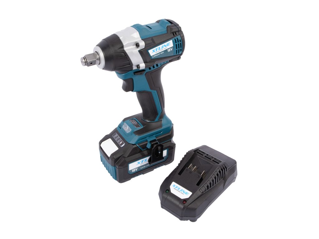 XTLINE Aku rázový utahovák na 1/2" hlavice bezuhlíkový 18 V + baterie 5.0 Ah + nabíječka 3.5 A + box