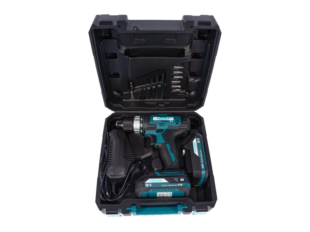 XTLINE XT102771 – aku vrtačka 18 V (2× baterie 2,0 Ah + nabíječka)