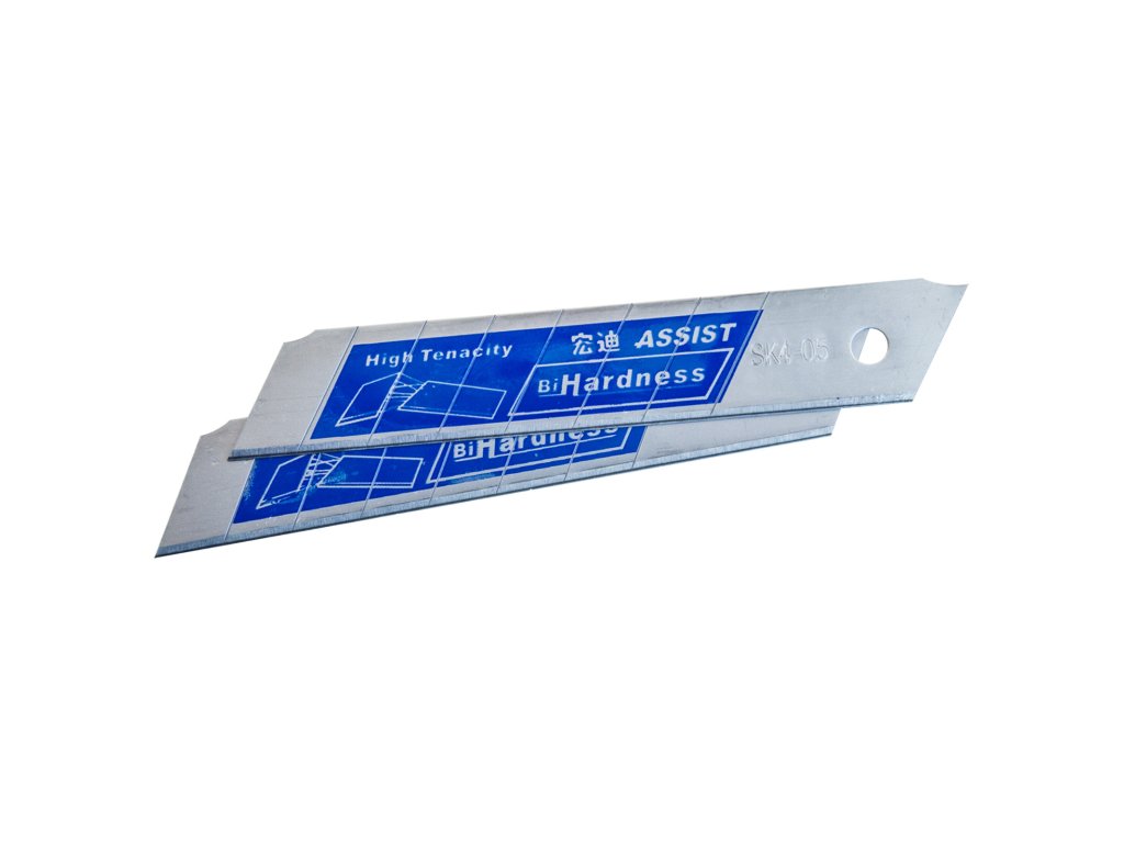 Náhradní čepele 18 mm jsou vyrobeny z uhlíkové oceli SK4. Tvrdší část ostří poskytuje vyšší odolnost proti opotřebení a delší životnost čepele při řezání nebo lámání materiálů s vysokou tvrdostí. Měkčí část těla čepele zase zvyšuje pružnost a odolnost proti nárazům.