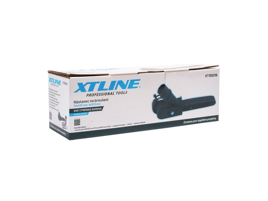 Univerzální nástavec XTline XT105319 rozšiřuje možnosti pásové brusky XTline XT105342 o přesné pásové broušení v různých šířkách. Umožňuje použití dvou typů brusných pásů: 30 × 533 mm pro běžné broušení a 9 × 533 mm pro detailní opracování v úzkých prostorech.