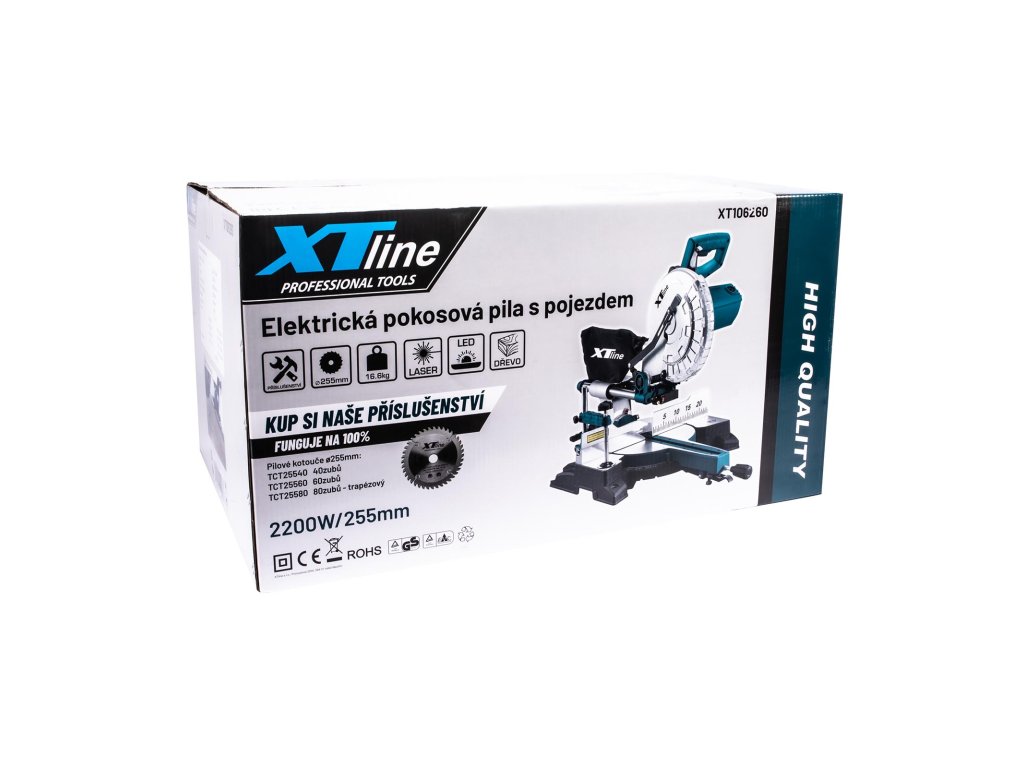 XTLINE Pokosová pila s pojezdem a laserem 2200 W, 255 mm