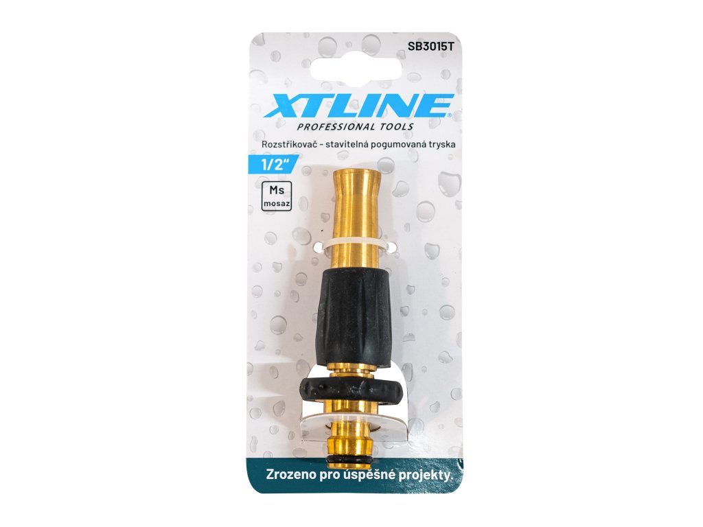 › Zahrada › Rozstřikovače, spojky, rychlospojky, redukce, ventily › Rozstřikovače, rozprašovače, zavlažovače › XTLINE Rozstřikovač - stavitelná tryska mosazná (pogumovaná) | 1/2"