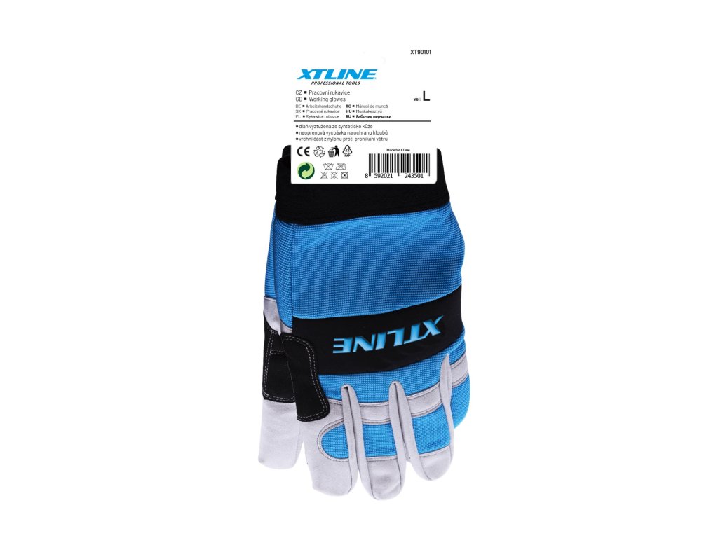 Pracovní rukavice XT90102 jsou kombinací syntetické kůže a neoprenových výstuží, které chrání dlaně a klouby při manipulaci s materiály. Hřbet rukavice je z nylonu, což zajišťuje flexibilitu a pohodlí při práci.